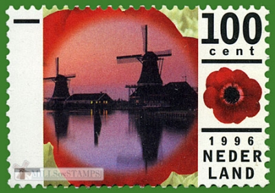 100 cents. Windmills (pumps) at "Zaanse Schans" open-air museum, anemone**.