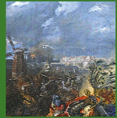 The picture supposedly illustrates the moment when Ulrich von Jungingen, the 26th Grand Master of the Teutonic Order (left, dressed in white, with a black cross), is killed by infantry. Vytautas the Great is shown in triumphant position (center, dressed in red).__________